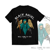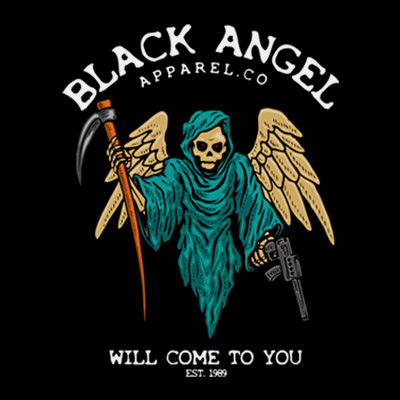 Black angel with firearms illustration. Source files are available in AI, CDR and PNG, With a large resolution and can be accessed with Adobe illustrator software and CDR. File design will be available in Adobe illustrator, CDR and PNG. Editable in Adobe illustrator and CDR only. and can be used for digital printing and screenprinting . Ready to print.
