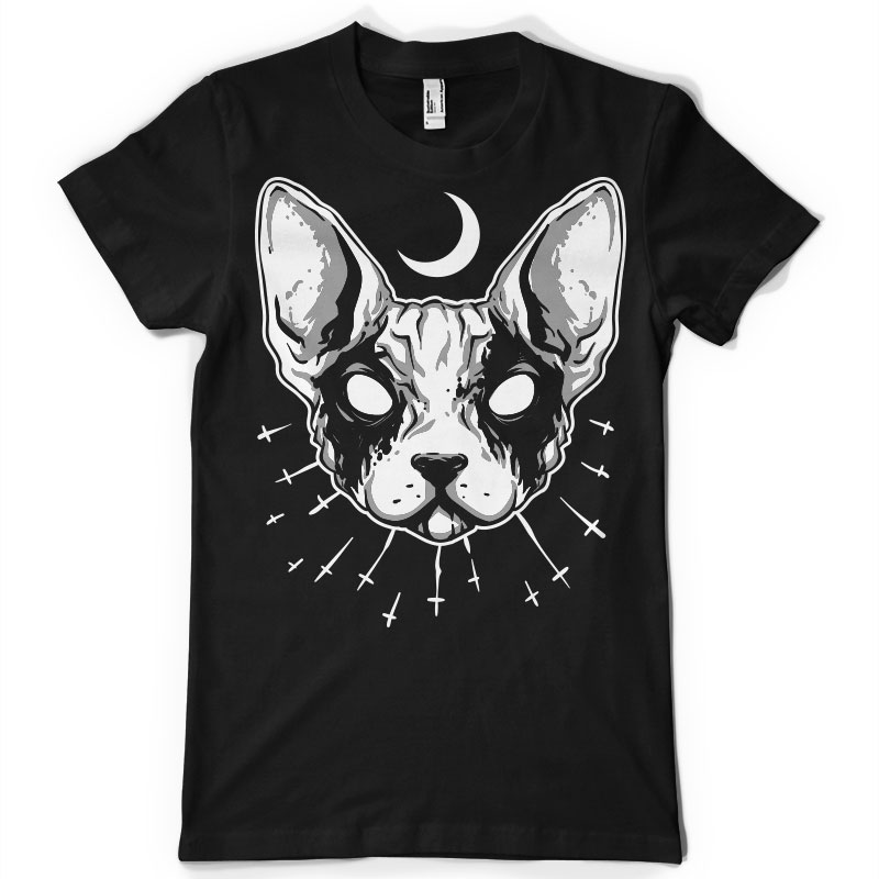 Black Metal Cat t-shirt design features a hand drawn sphink cat with black metal corpse paint . This is an Adobe Illustrator file, ready for print. Files included are Eps. The template can be used for digital printing and screenprinting.The file is well organised with every element on its own layer, including artwork , and background