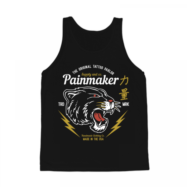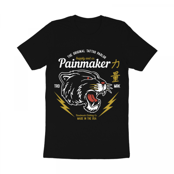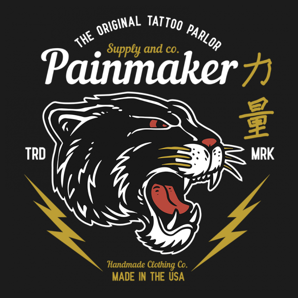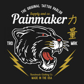 Vector illustration of black puma with vintage tattoo illustration style. Ready to print on t-shirt. Teh japanese kanji words means strength.