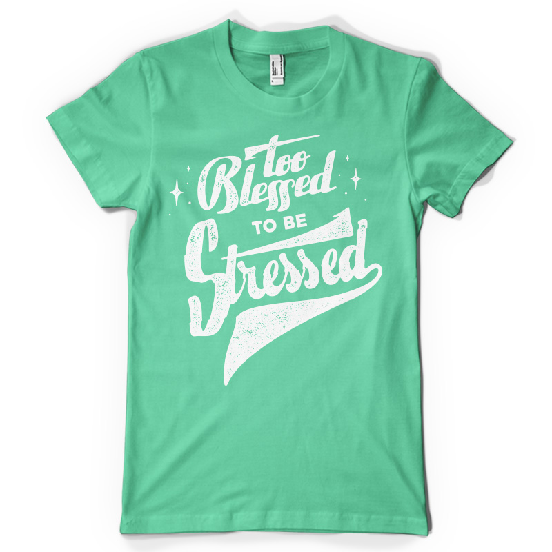 "Blessed" T-shirt design featuring typography style quote, with distressed details. The files available are suitable for Adobe Illustrator and Adobe Photoshop and can be used for digital printing and screenprinting.