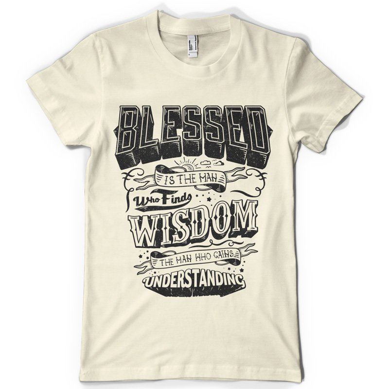 "Blessed" T-shirt design featuring typography style print with a bible quote. The files available are suitable for Adobe Illustrator, Adobe Photoshop and Corel Draw and can be used for digital printing and screenprinting.