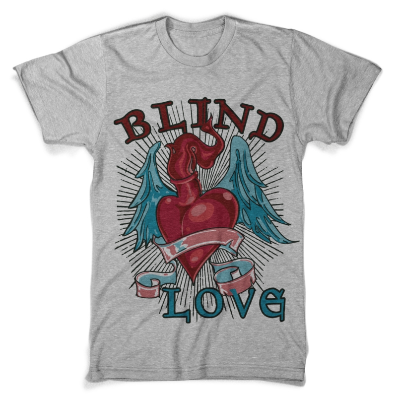 Heart wings pumping out fire a perfect t-shirt design for those who are in love. Blind love is blind template will be available in vector format for Adobe Illustrator, Adobe Photoshop and Corel Draw and can be used for digital printing and screenprinting .
