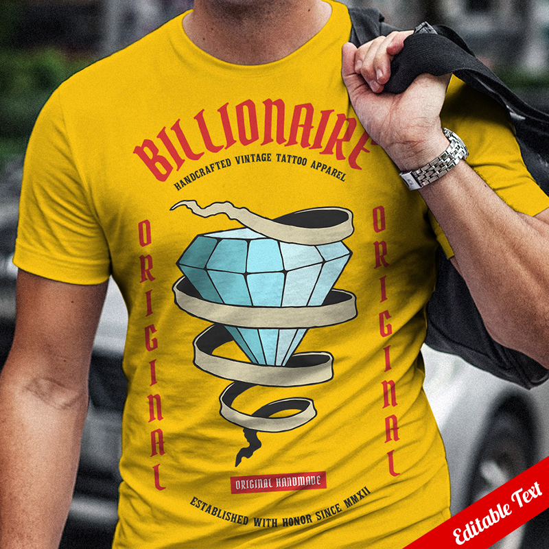 Vector illustration of diamond tattoo with ribbon. Ready to print on t-shirt.