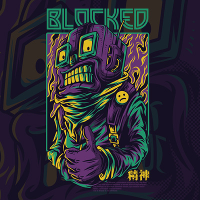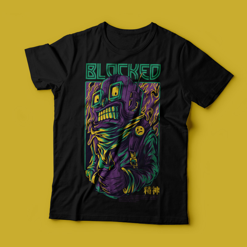 Blocked T-Shirt Design it's a character design that was made in Adobe Illustrator. Based on vector file, easy to resize and edit. File features AI, EPS, and PNG all in zip, CMYK color mode and 4 color. Can be used for digital printing and screen printing.