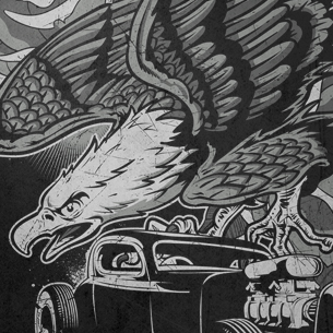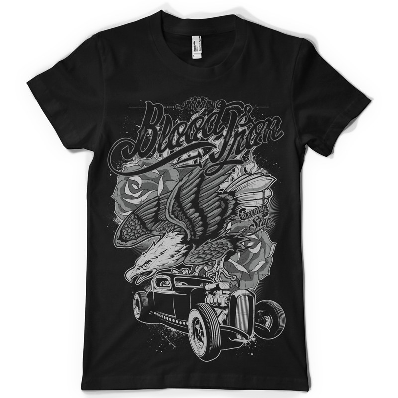 Blood and iron printed t-shirt features a detailed screen print of eagle and retro car now available for Adobe Illustrator, Adobe Photoshop and Corel Draw and can be used for digital printing and screenprinting .