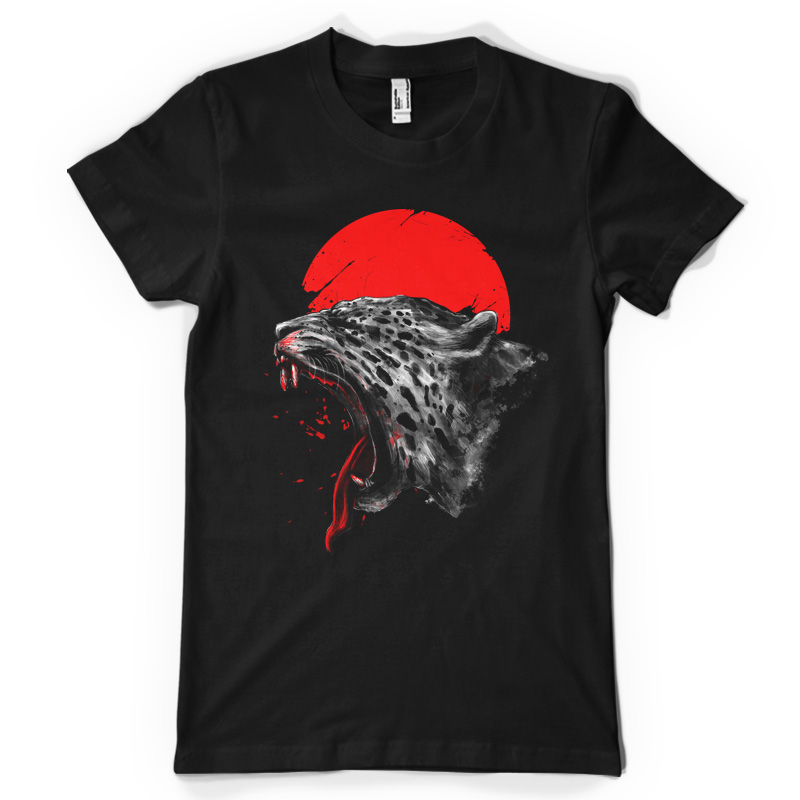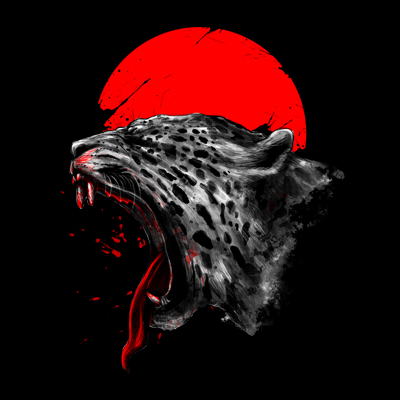"Blood Shed" is an illustration of a jaguar in Beast Mode paired with a japanese sun at the background and blood all over its mouth. This design has only 2 colors and is easy for printing. File contains a PSD file with 17x24 in size with 300 in dpi.