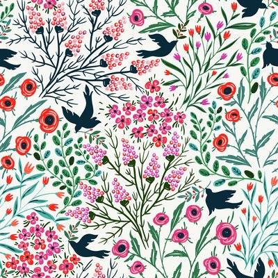 Vector floral seamless pattern with summer blooms and abstract.This image is a vector illustration and can be scaled to any size without loss of resolution.This image will download as a .eps file.