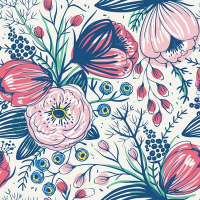 Vector floral seamless pattern with vintage flowers.This image is a vector illustration and can be scaled to any size without loss of resolution.This image will download as a .eps file.