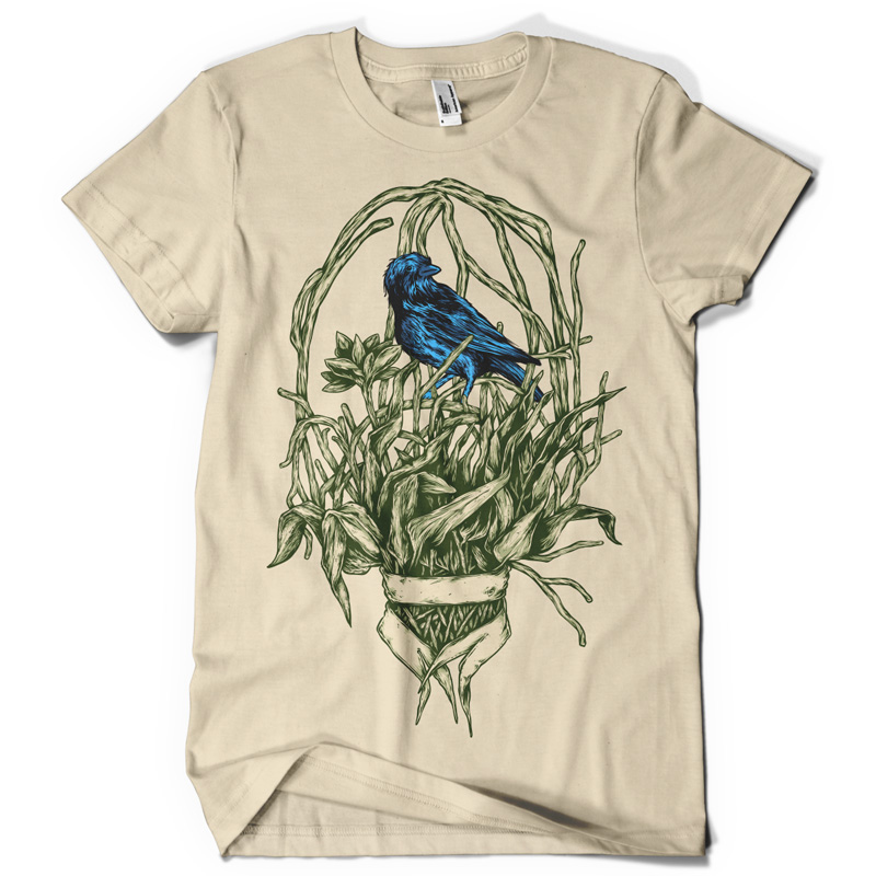 Blue bird t-shirt design in vector format, made for screenprinting and digital (DTG) printing, can be used with Adobe Illustrator, Photoshop and Corel Draw. The template can be customized by the designer.