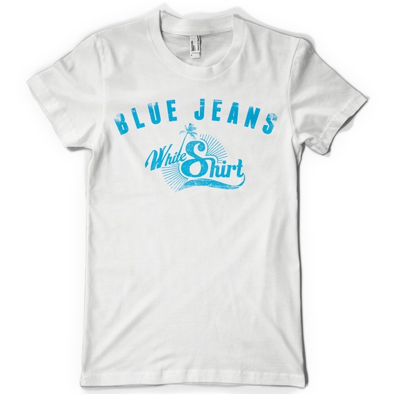 Blue jeans White shirt graphic design template in vector format, featuring detailed summer t-shirt now available for Adobe Illustrator, Adobe Photoshop and Corel Draw and can be used for digital printing and screenprinting .