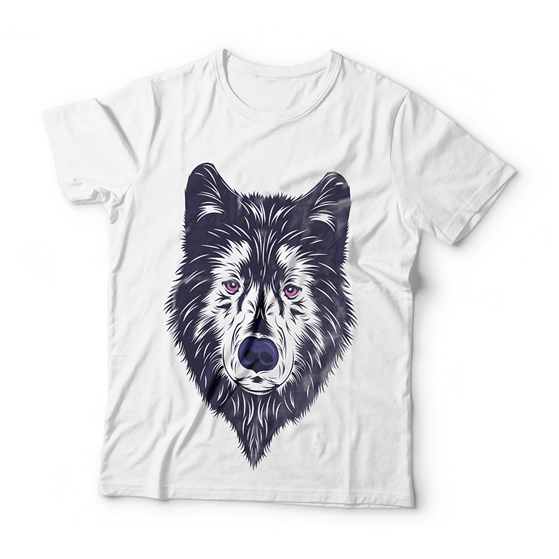 Wolf T-shirt design in vector style. The file is available in AI and PNG format and can be accessed with the Adobe Photoshop and Illustrator softwares. Can be used for digital printing.