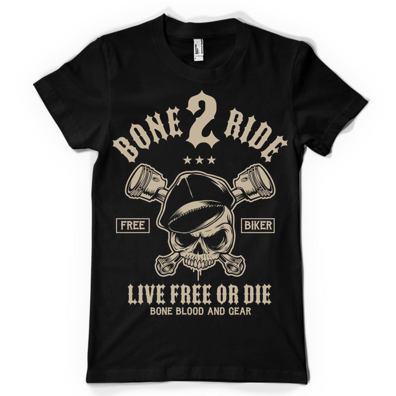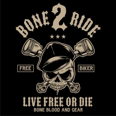 the tittle " Bone 2 Ride" .T-shirt design template with CorelDraw or Adobe Illustrator. 2 colour print, CDR,AI, EPS. Can be used for digital printing and screen printing.