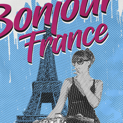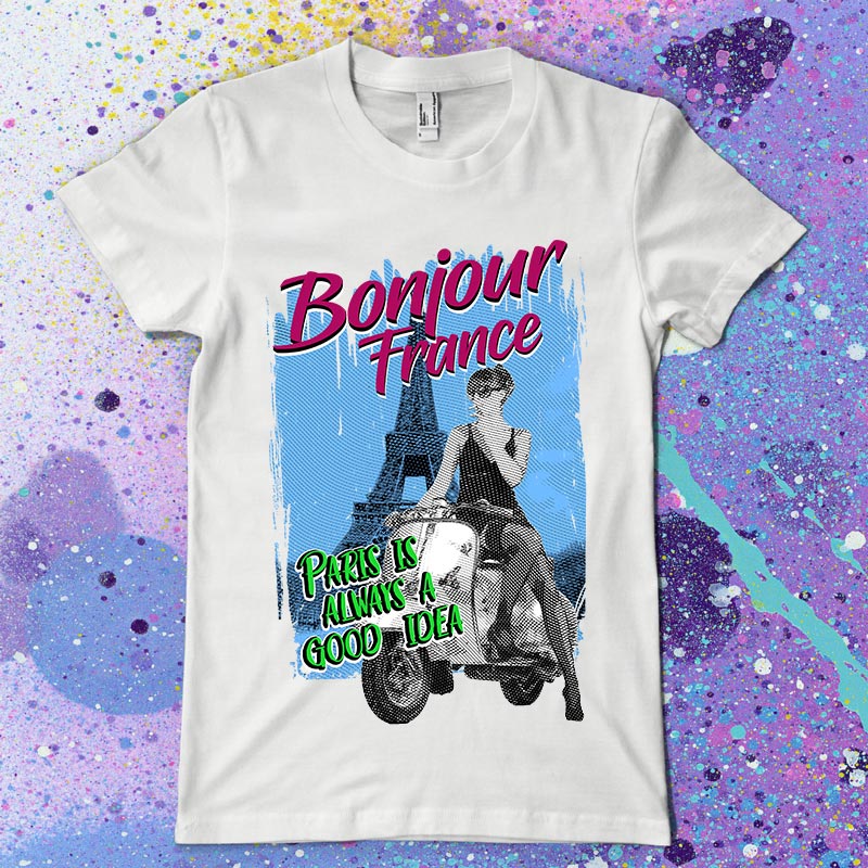 Bonjour France design features a pin up girl design with detailes. Screen print now available for Adobe Photoshop and can be used for digital printing and screenprinting