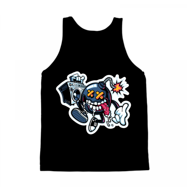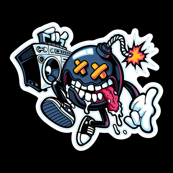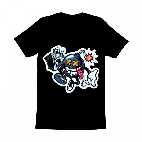 “Boom Box ” Cartoon style. such as Ai,EPS,CDR, PDF and PNG Transparent. the design has 7 colors on black T-shirt. print it can be used for digital printing and screen printing
