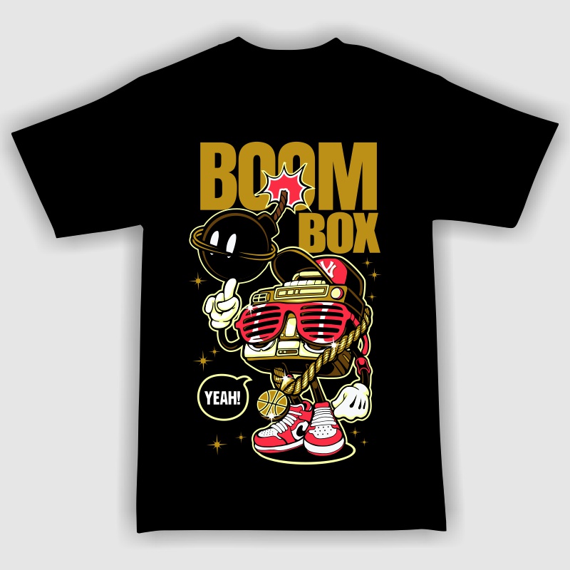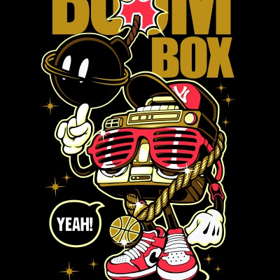 "Boom box"character style T-shirt design.The files available are suitable for Adobe Illustrator, Adobe Photoshop and Corel Draw and can be used for digital printing and screen printing.