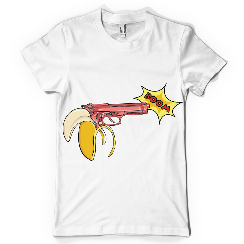 BOOM is an illustration made in Adobe Illustrator,featuring a banana gun.It can be used on digital printing,screen printing,T-shirt design and it is available in PSD,EPS,AI and CDR format file.
