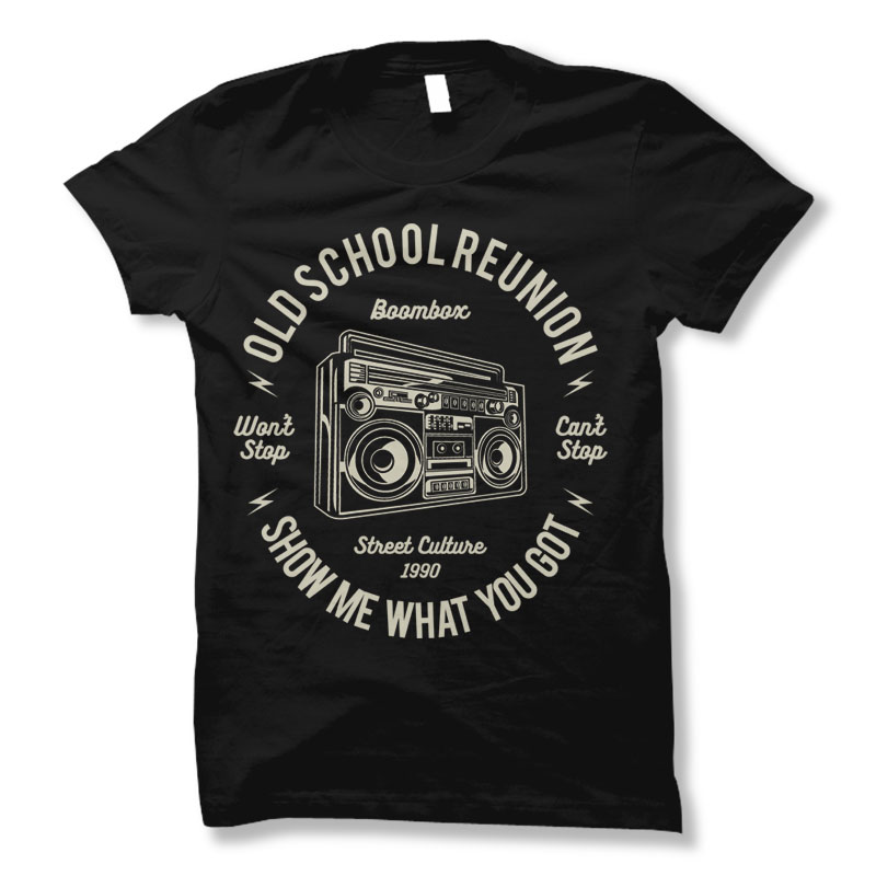Boombox Tshirt Design Template based on vector files , such as AI and CDR also with PSD separated Layers file, the design has 3 color print, it can be used for digital printing and screen printing