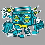 Vintage Boombox Cartoon character style T-shirt design template , The file is PSD separated Layers. Can be used for digital printing and screen printing.