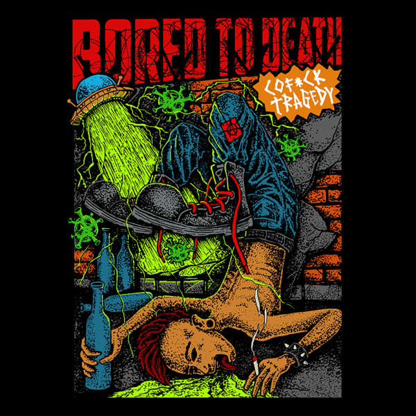 BORED TO DEATH illustration, Available PSD, JPG and PNG, With a large resolution and can be accessed with Photoshop. Editable in Photoshop only.