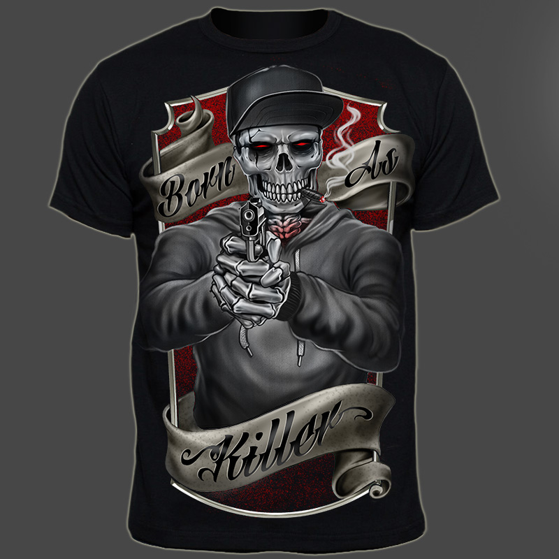 Born As Killer T-shirt this great quality artwork design Template with Adobe Photoshop, the file is PSD separated Layers. Can be used for digital printing and screen printing.