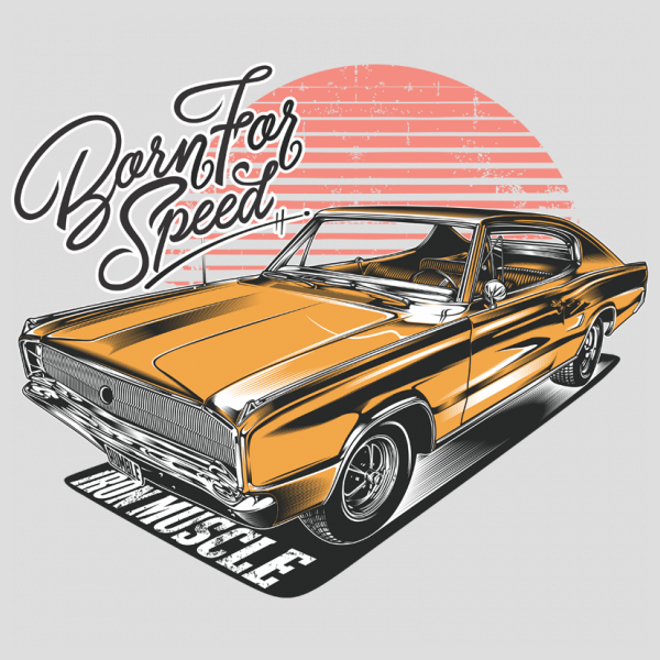 Born For Speed classic car illustration T-Shirt was created with Corel Draw and Adobe illustrator, two color print, CDR,AI,PNG,EPS Can be used for digital printing and screen printing