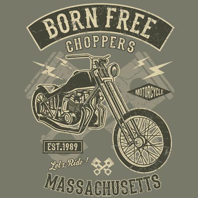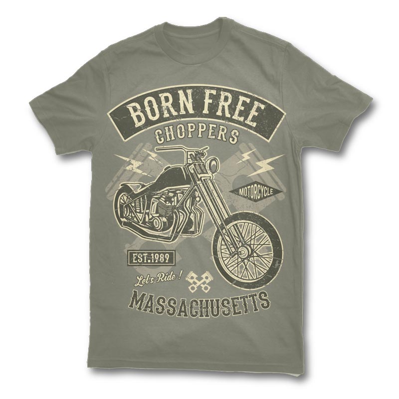 Born Free Choppers Tshirt Design Template based on vector files , such as AI and CDR also with PSD separated Layers file, the design has 3 color print, it can be used for digital printing and screen printing.
