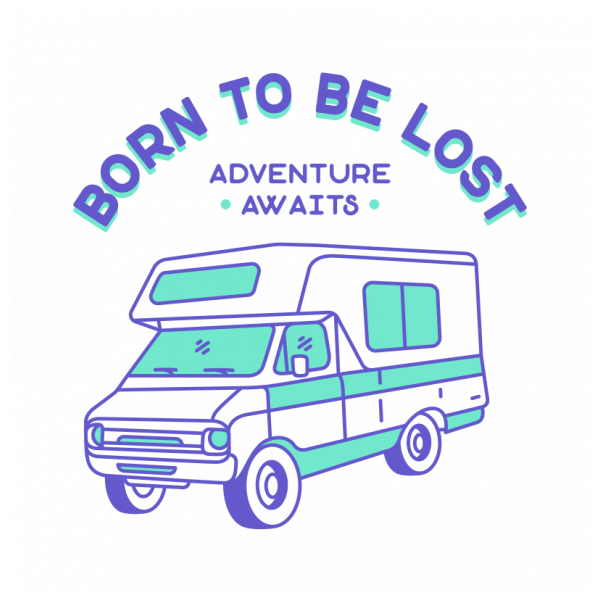 Is a monoline illustration that is suitable for apparel or merchandise about nature, outdoors, trip, travel, adventure, journey, camping, holiday, vacation, camper, van, wanderlust, wildlife, summer, quotes.