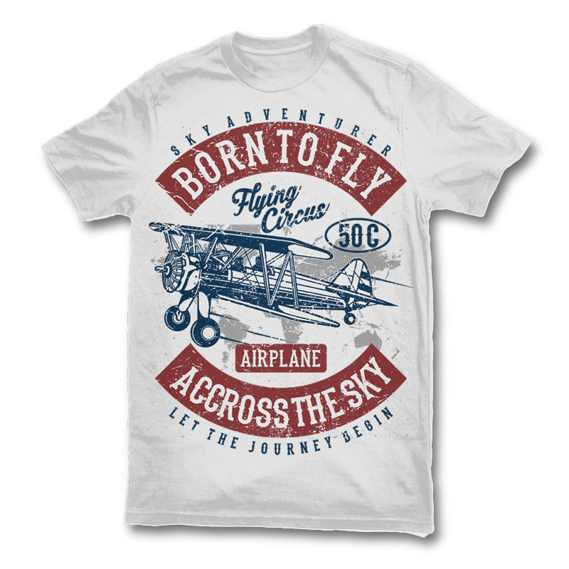 Born To Fly Tshirt Design Template based on vector files , such as AI and CDR also with PSD separated Layers file, the design has 3 color print, it can be used for digital printing and screen printing.