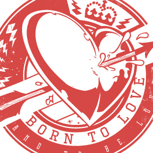 Born to love graphic design template in vector format, featuring detailed arrowed heart now available for Adobe Illustrator, Adobe Photoshop and Corel Draw and can be used for digital printing and screenprinting .