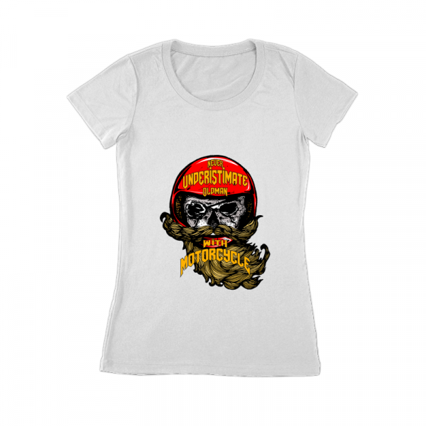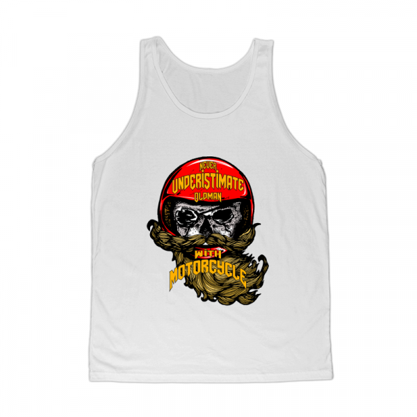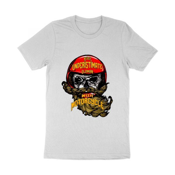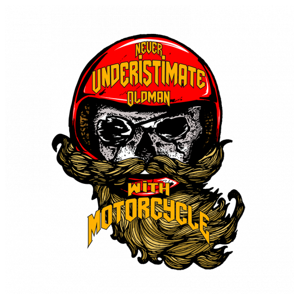 Oldman skull with red helmet "never underistimate oldman with motorcycle" , motorcycle skull rider, easy to print on your apparel product and looks cool on your tshirts and your other product.