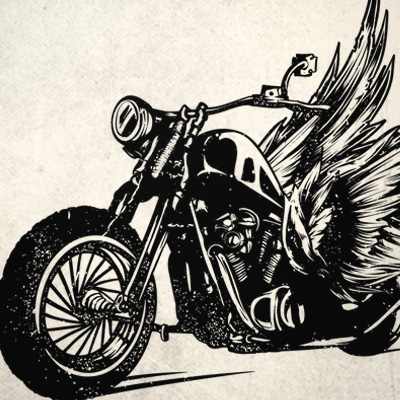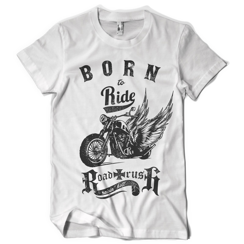 Born to Ride graphic design template in vector format, featuring detailed winged motorcycle now available for Adobe Illustrator, Adobe Photoshop and Corel Draw and can be used for digital printing and screenprinting .