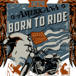 Digital design featuring detailed american eagle. Born to ride template is available in vector format and can be used for digital printing and screenprinting. The file will be available for Adobe Illustrator, Adobe Photoshop and Corel Draw.