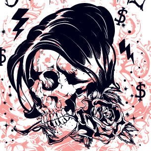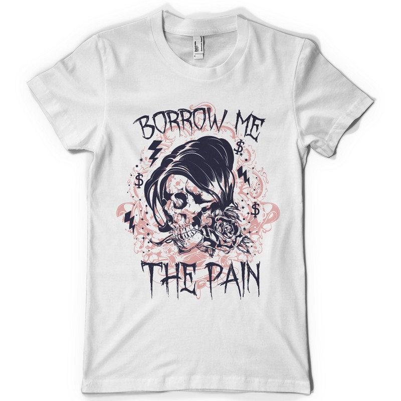 Digital design featuring detailed retro skull. Borrow me the pain template is available in vector format and can be used for digital printing and screenprinting. The file will be available for Adobe Illustrator, Adobe Photoshop and Corel Draw.