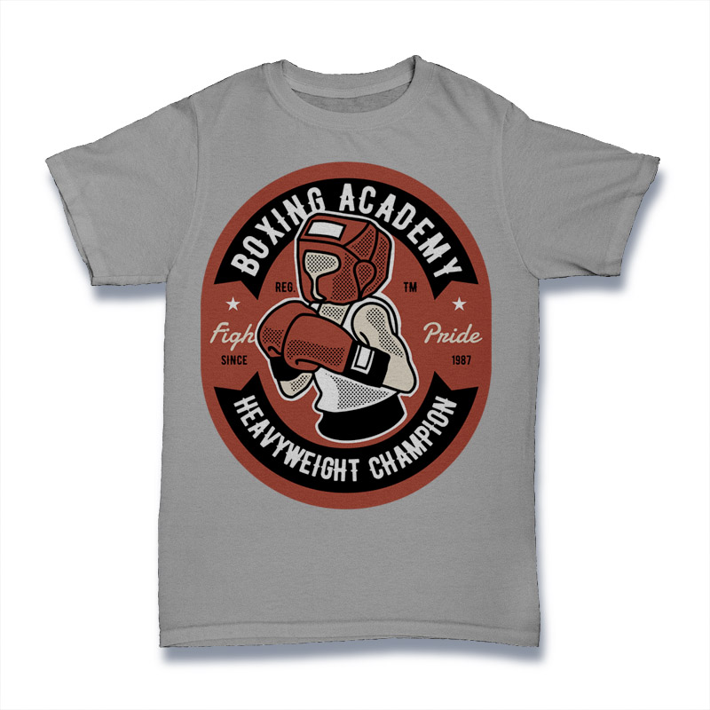 Boxing Academy Sport Cartoon style T-shirt design template , The files are AI, CDR, PSD separated Layers. Can be used for digital printing and screen printing.