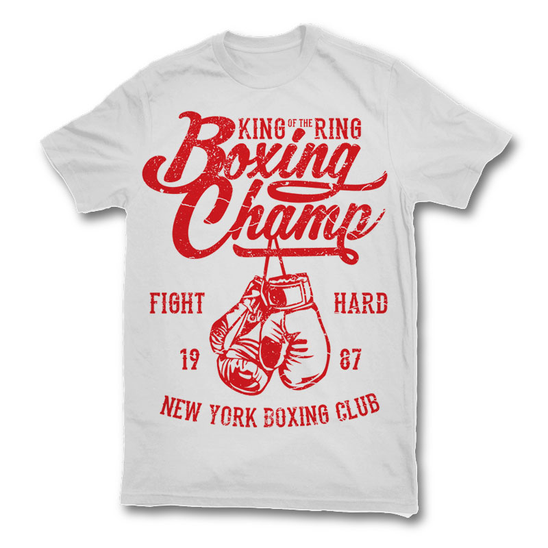 Boxing ChampTshirt Design Template based on vector files , such as AI and CDR also with PSD separated Layers file, the design has 1 color print, it can be used for digital printing and screen printing.