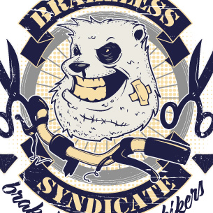Brakeless syndicate graphic design template in vector format, featuring detailed mad creature now available for Adobe Illustrator, Adobe Photoshop and Corel Draw and can be used for digital printing and screenprinting .