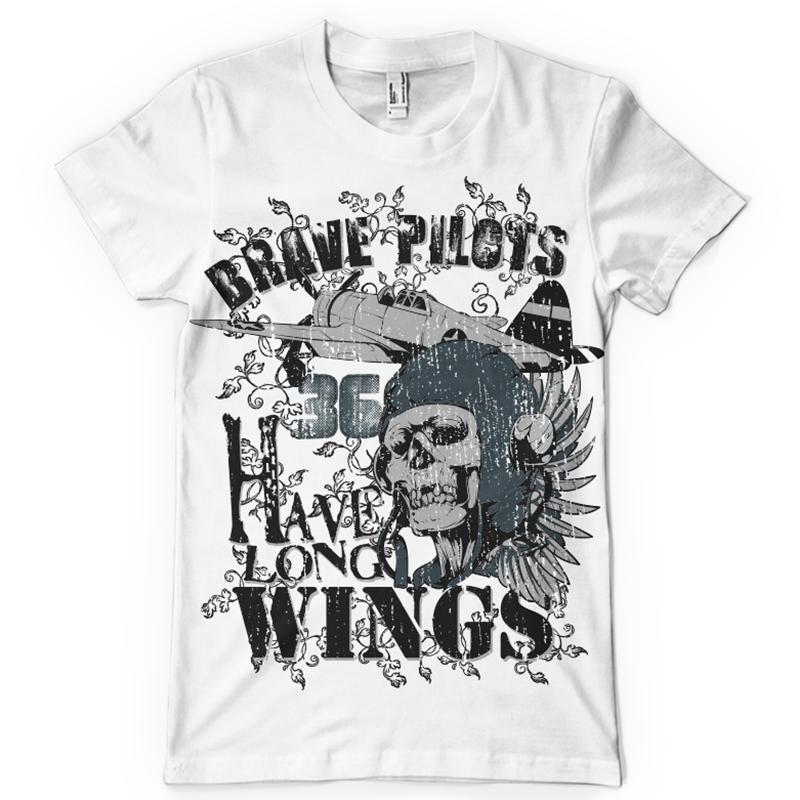 Brave pilot printed t-shirt features a detailed screen print of pilot skull is now available in EPS format file and can be used for digital printing and screenprinting . Ready to print or use in anything you want.
