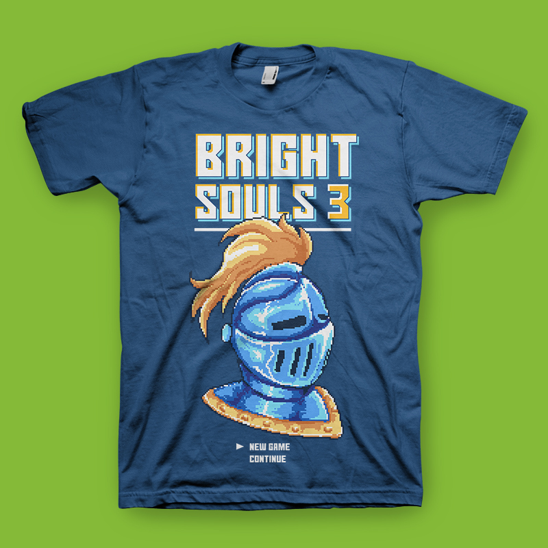 Bright Souls Knight pixel art character. Inspired from the retro video game pixel art mixed with parody of popular games on video games console. This illustration made with pixel art style.