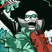 Brook T-Shirt Design. Digital illustration of Brook with featuring detailed violin and smoke.The colors are changeable. The source file is available in AI, EPS, PNG, PSD and SVG format.