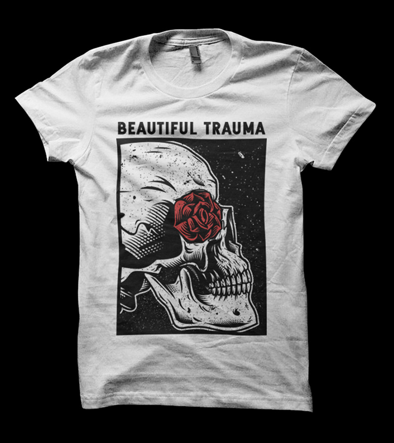Beautiful Trauma style T-shirt design template use 3 colors. T-shirt template is available in photoshop (PSD),Illustrator (AI),Scalable Vector Graphics (SVG),Encapsulated PostScript (EPS) format. separated Layers. Can be used for digital printing and screen printing.
