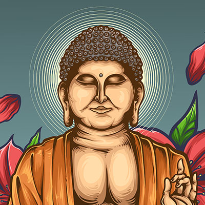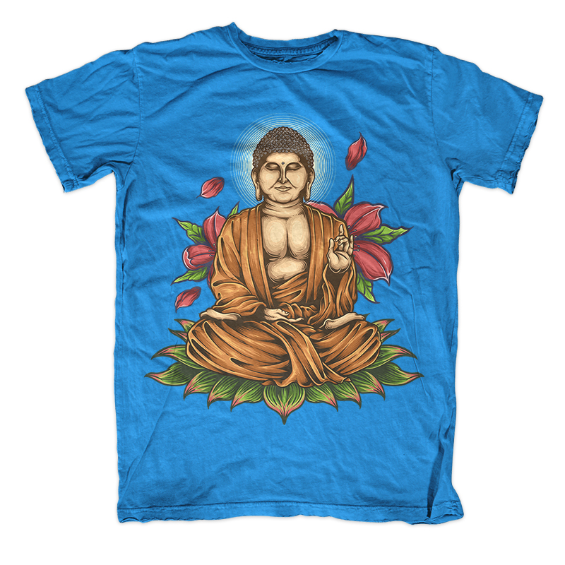 Vector illustration of buddha meditation on the lotus with calm and peace gesture and smile. Make with asian tatto style art. Ready to print on t-shirt.