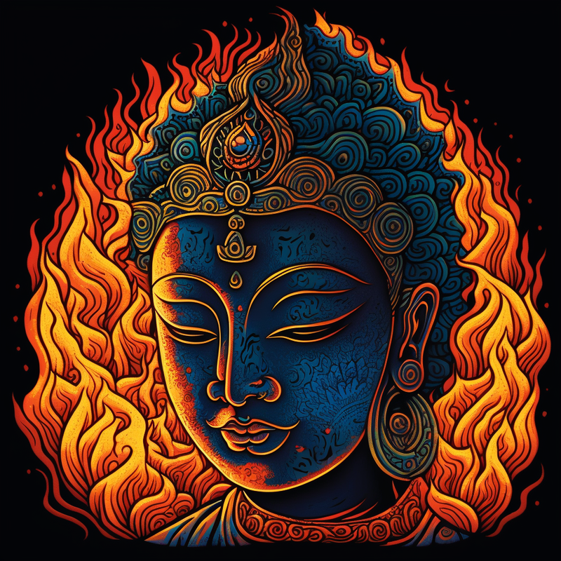 Budha with Fire Flames