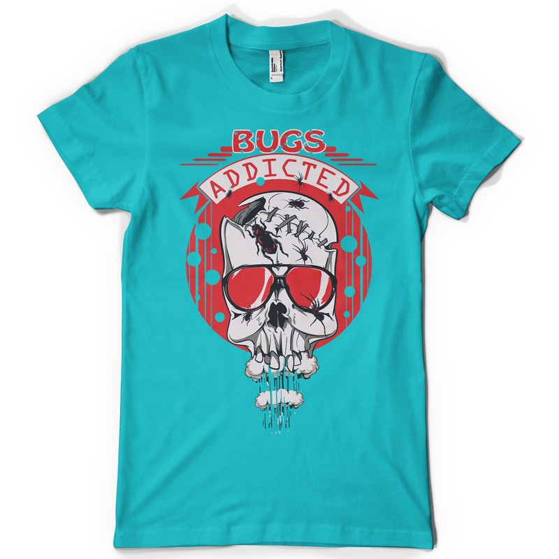 Bugs addicted printed t-shirt features a detailed screen print of skull full of bugs an other insects now available in EPS format and can be used for digital printing and screenprinting . Ready to print or use in anything you want.
