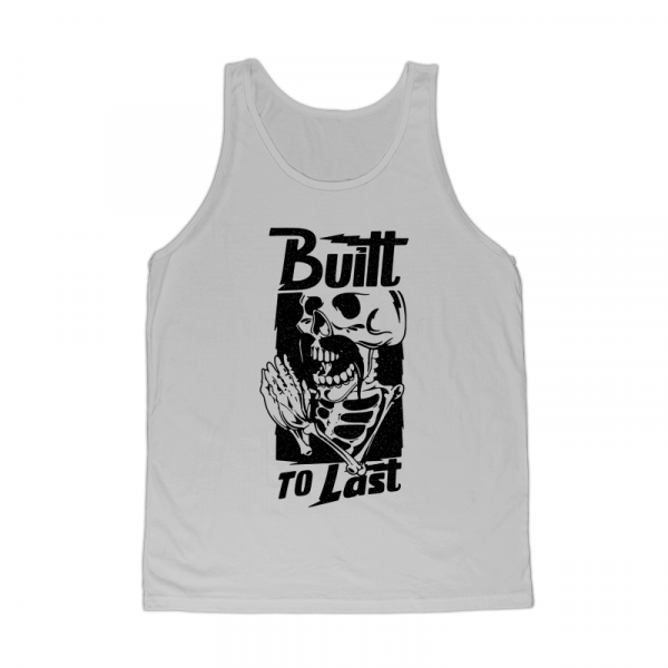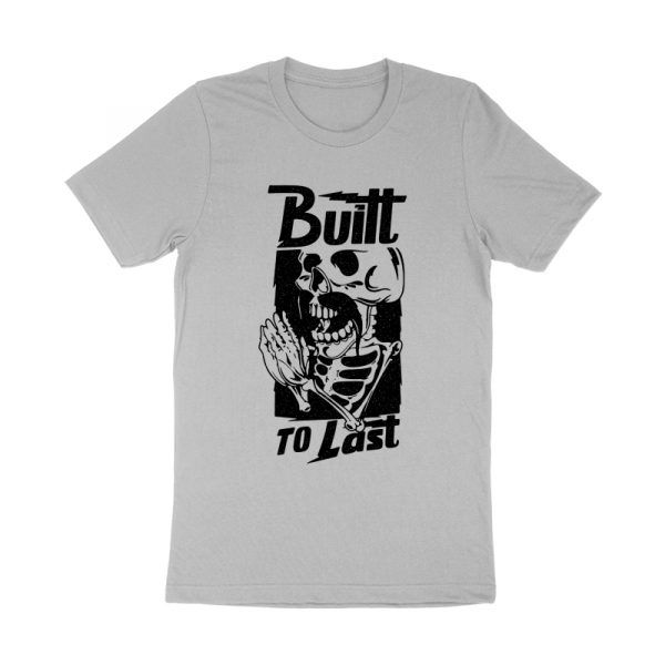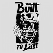 "Built to Last" T-shirt design featuring a funny tattoo style character and a nice quote. The files available are suitable for Adobe Illustrator and Adobe Photoshop and can be used for digital printing and screen-printing.