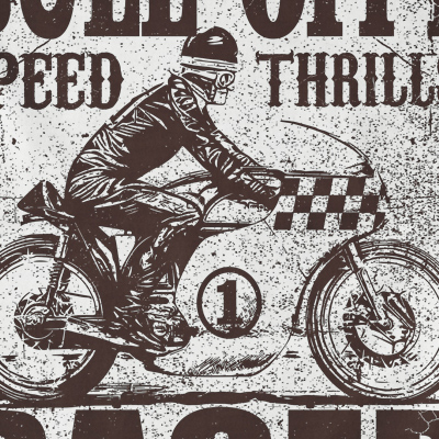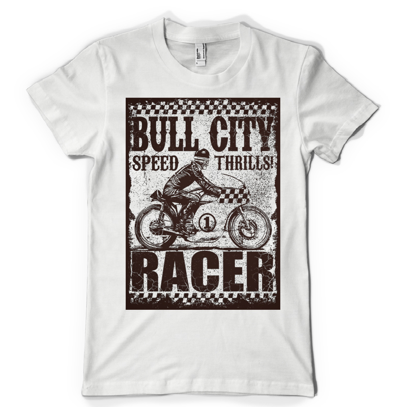 Bull City design features a cafe race detailed screen print now available for Adobe Illustrator, and Corel Draw and can be used for digital printing and screenprinting.