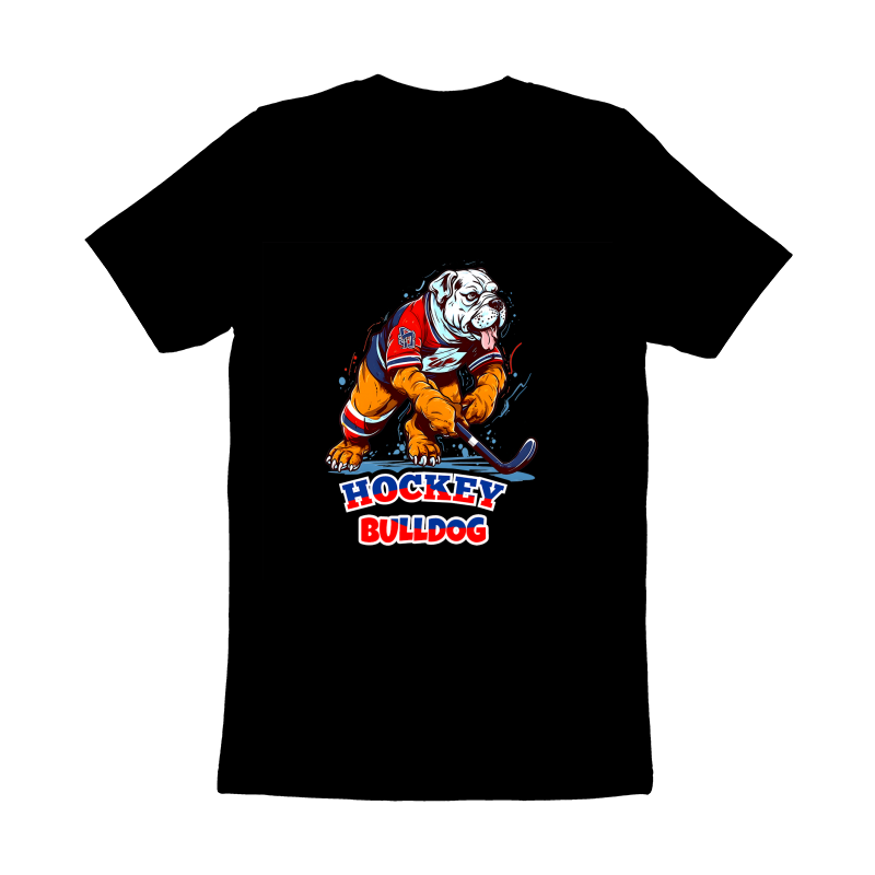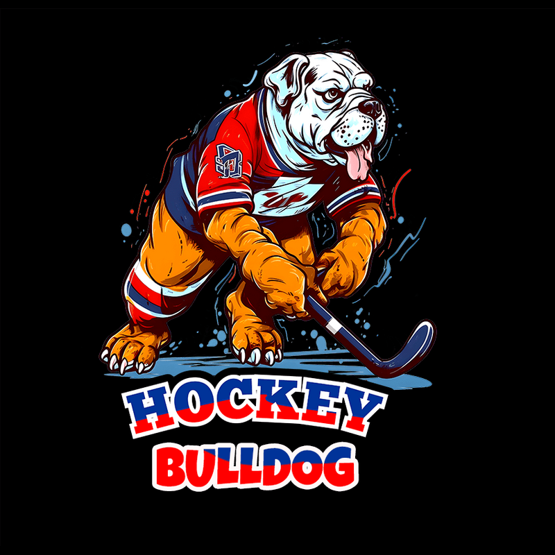 Bulldog playing hockey