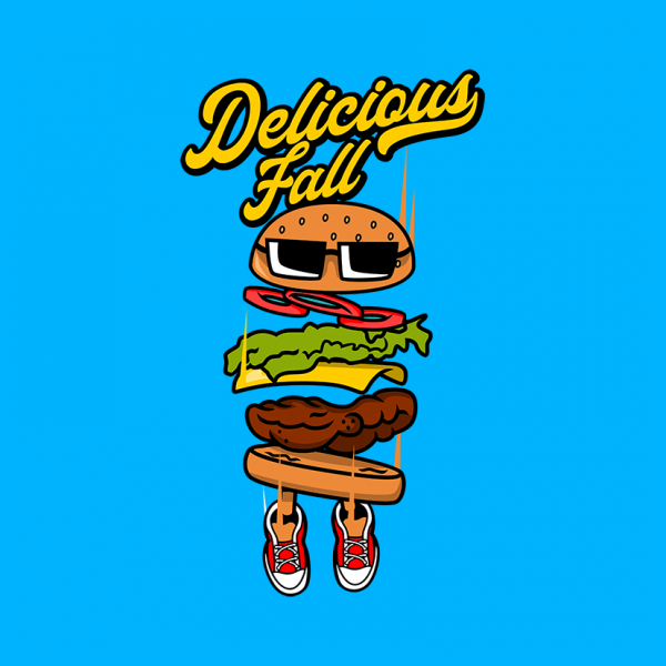 vector illustration of BURGER FALL, this image is very cute for t-shirts and posters, this design is available in the form of files, CDR, AI, transparent backround PNG, JPEG, SVG, EPS, mookup not included