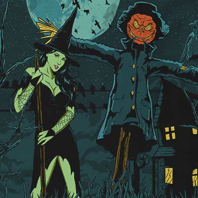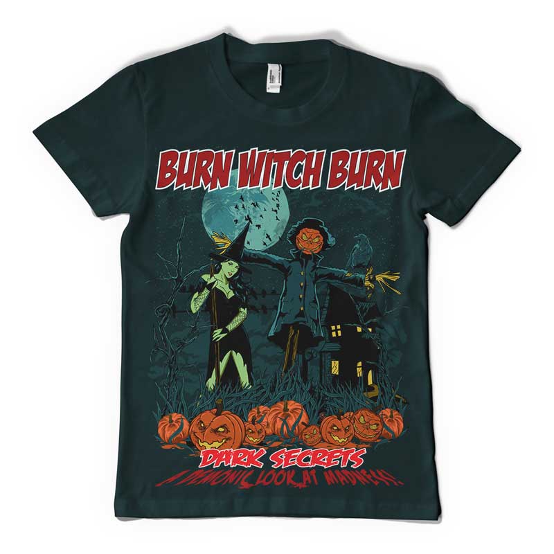 Burn Witch Burn features a detailed screen print of halloween image now available for Adobe Illustrator, Adobe Photoshop and Corel Draw and can be used for digital printing and screenprinting .