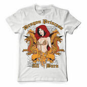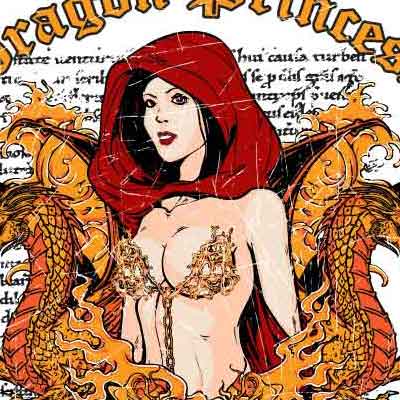 Burn t-shirt design features a detailed screen print of sexy dragon princess now available for Adobe Illustrator, Adobe Photoshop and Corel Draw and can be used for digital printing and screenprinting .