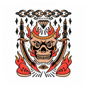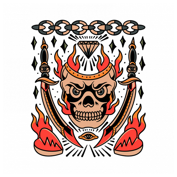burning skull tattoo flash